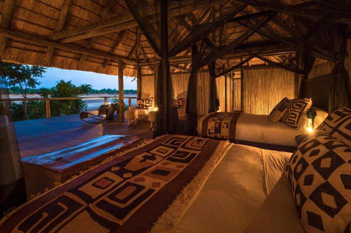 Un campamento impresionante en una de las ubicaciones privilegiadas de los rÃos del sur de Luangwa, perfecto para una vista de pájaro de la vida silvestre que atraen el rÃo y sus lagunas.