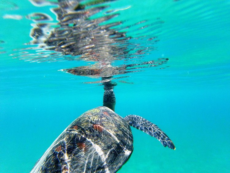 El santuario marino de Turtle Bay es una gran extensión de 28 hectáreas que hemos protegido durante 12 años. El aumento de hermosos corales, peces tropicales y tortugas marinas ha sido un placer ser testigo. Es un lugar ideal para practicar kayak / snorkel para ver las muchas tortugas y peces tropicales en nuestros 2 arrecifes de casas grandes. El extremo lejano de nuestra bahÃa abre otro mundo para buceadores con corales profundos y avistamientos de mantarrayas, vacas marinas y delfines, etc. Las tortugas verdes en peligro de extinción y las tortugas Olive Ridley son las más comunes que se observan en Turtle Bay. Los huevos se ponen en nuestras playas de octubre a marzo y la incubación es de noviembre a mayo. Durante todo el año, las tortugas nadan en nuestra protegida "Turtle Bay", en busca de su compañero de apareamiento. 34 tortugas pusieron huevos en nuestras playas 2018, con 2021 tortugas nacidas este año.
