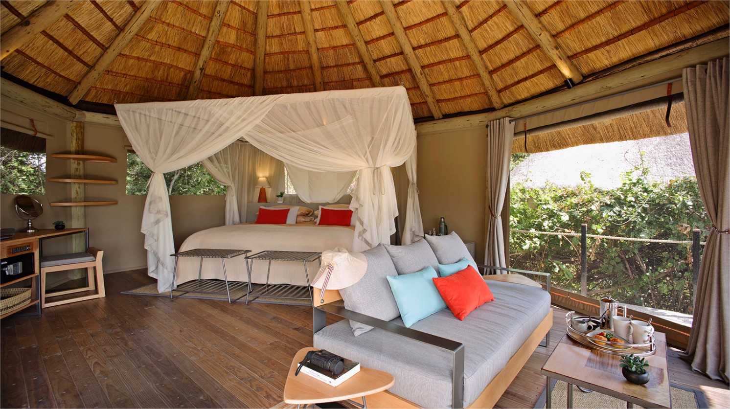 Lion Camp es independiente e individual, un albergue principal vinculado a 10 suites por pasillos de madera elevados, que ofrece la experiencia única de un albergue sin cercos, que se extiende a lo largo del lado de un tranquilo arroyo, donde abundan los animales de caza y caza, en toda la temporada. En ausencia de vallas, el juego se mueve libremente por el campamento. Con una población saludable de leones, leopardos, búfalos y jirafas en el área inmediata, asà como elefantes, hipopótamos, bushbuck y antÃlopes que se ven regularmente en el albergue, tienen la garantÃa y la increÃble experiencia de safari, ya sea en el campamento o en coche.