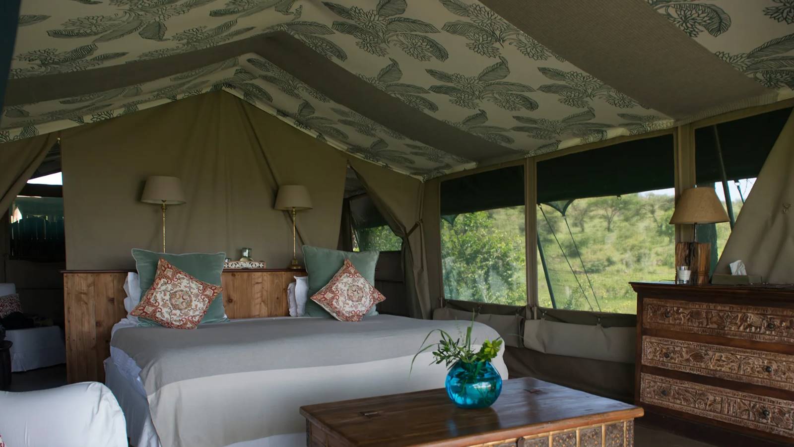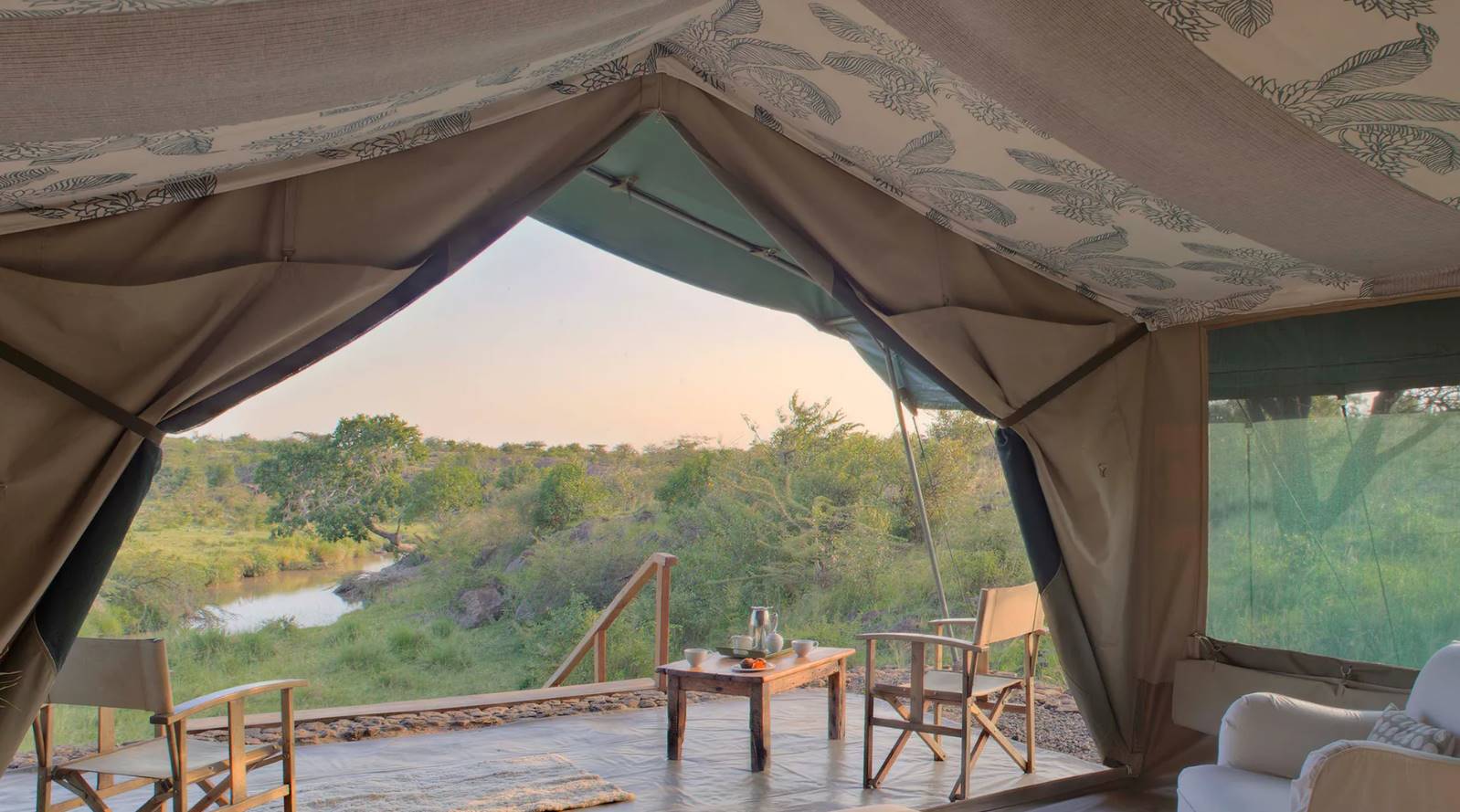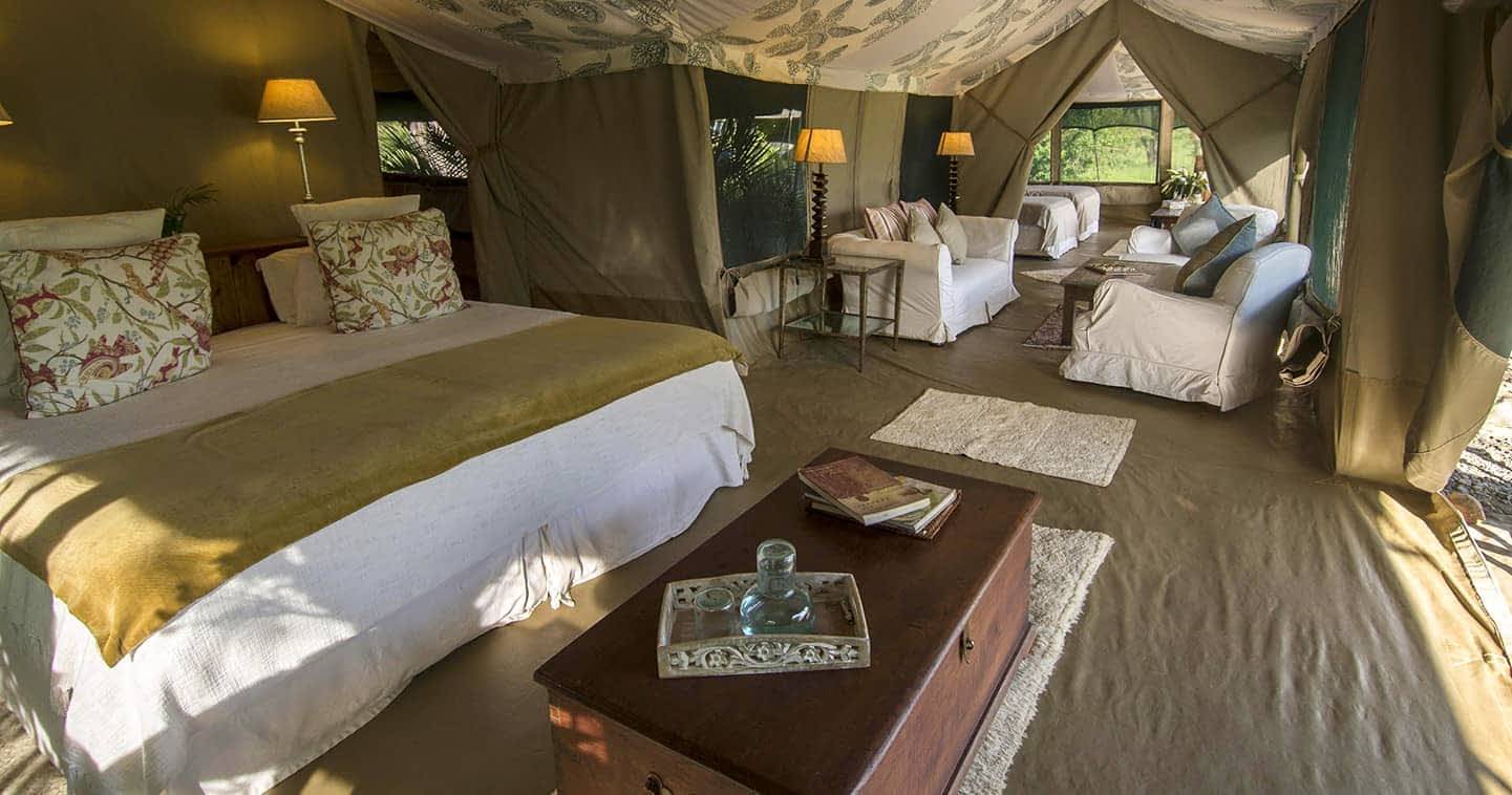 Richard's River Camp, ubicado en la Reserva Nacional de Maasai Mara, Kenia, ofrece una experiencia de safari Ãntima y exclusiva. Con solo siete tiendas de lujo, cada una con vistas espectaculares, el campamento garantiza privacidad y comodidad. Las actividades incluyen safaris en 4x4, caminatas guiadas y visitas culturales a comunidades locales. El campamento se dedica a la conservación y trabaja estrechamente con los Maasai para proteger la fauna local. Los huéspedes disfrutan de comidas gourmet, bebidas y un servicio personalizado en un entorno natural impresionante, ideal para observar la migración de los ñus y otros animales salvajes.