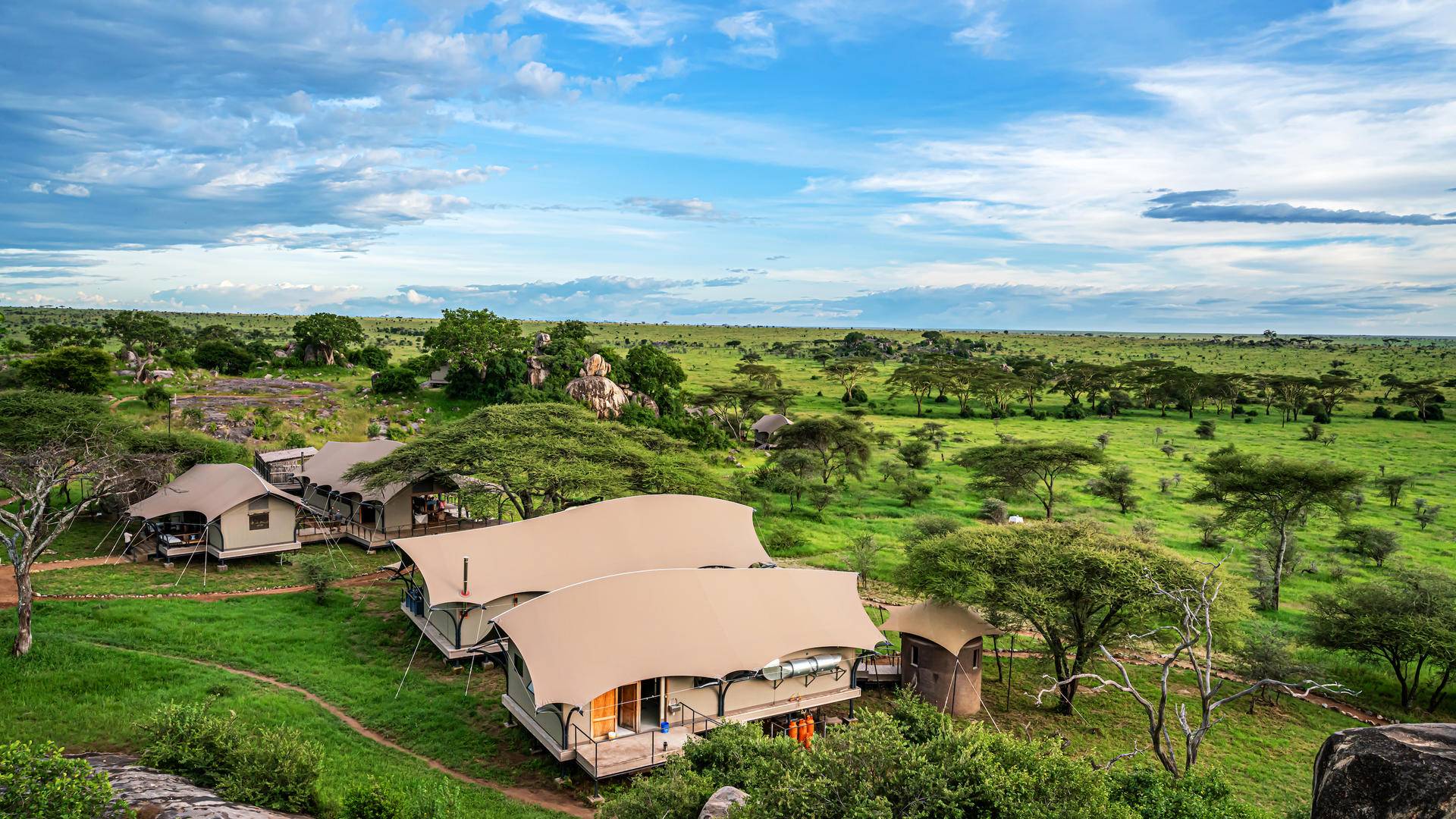 Ubicado a unos 60 minutos en coche al este de la pista de aterrizaje de Seronera, Lemala Nanyukie se encuentra en una sabana herbosa salpicada de kopjes rocosos y sombreada por antiguas acacias gigantes. Esta área del Serengeti es conocida por su alta densidad de vida silvestre durante todo el año, incluyendo grandes concentraciones de felinos como leones y guepardos. Además, la espectacular migración anual de ñus atraviesa esta región, ofreciendo a los huéspedes una experiencia de safari inolvidable.