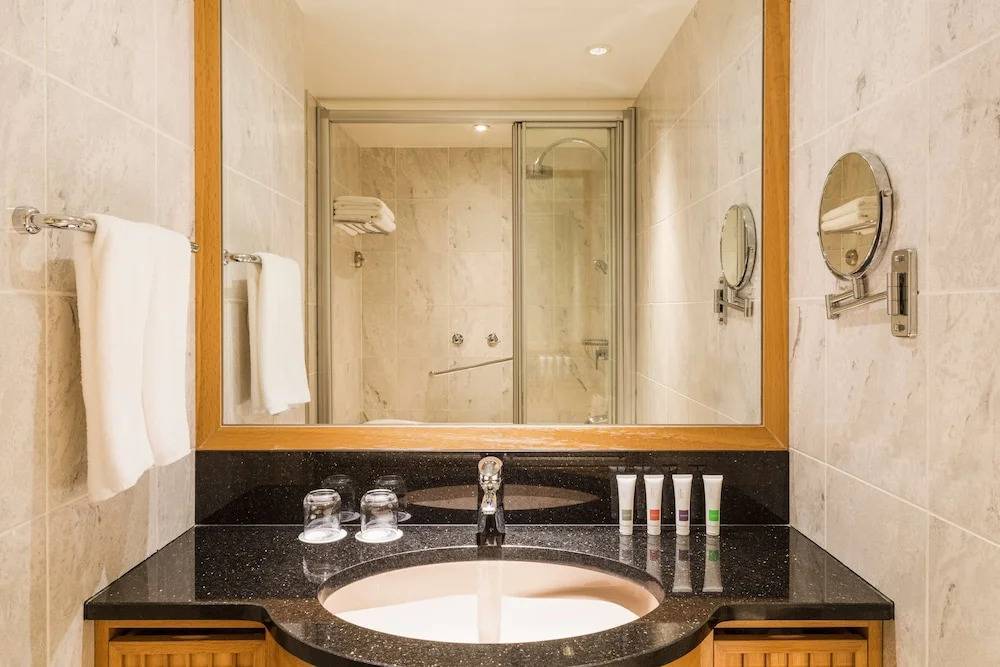 Las opciones gastronómicas son excepcionales: desde restaurantes premiados de cocina japonesa kaiseki hasta experiencias de alta cocina internacional. El hotel también cuenta con un completo spa, piscina interior y un moderno centro de fitness, ideales para viajeros exigentes que buscan bienestar integral.