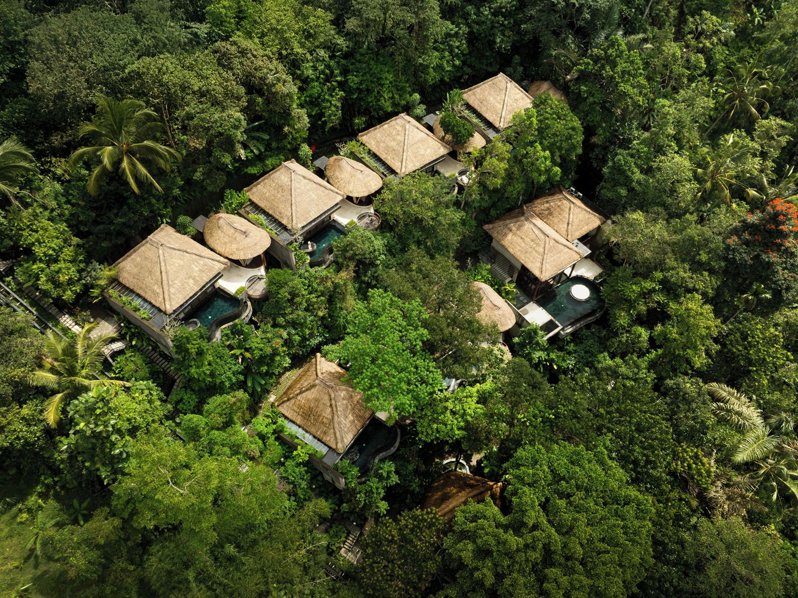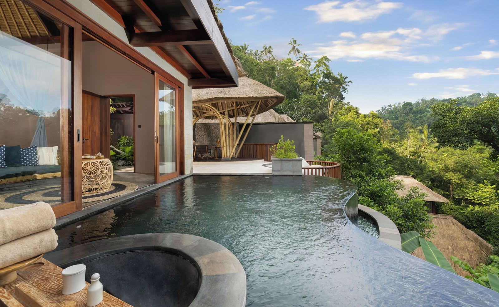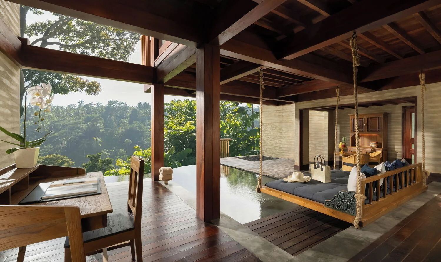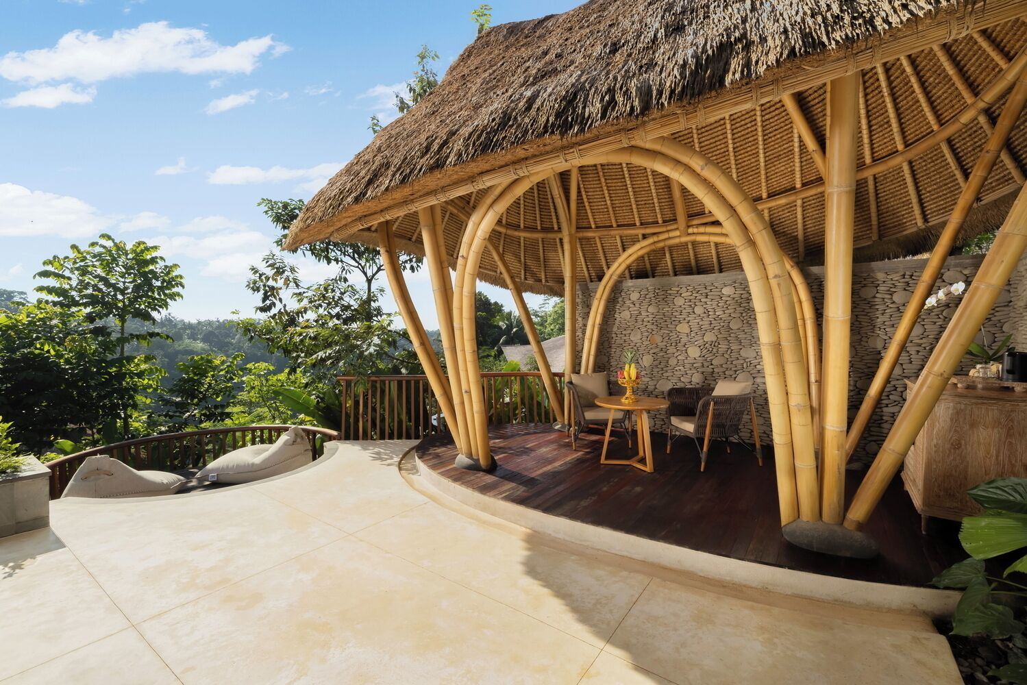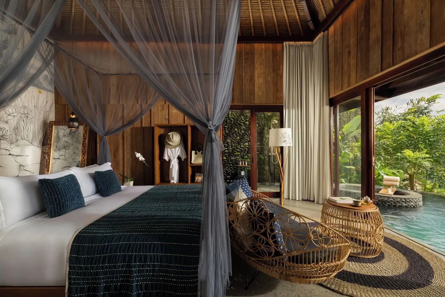 El alojamiento combina una estética contemporánea con arquitectura tradicional balinesa, utilizando materiales naturales como madera, piedra y fibras locales. Cada villa ofrece privacidad absoluta, vistas abiertas al entorno y una atmósfera de serenidad total, ideal para desconectar y reducir el ritmo.