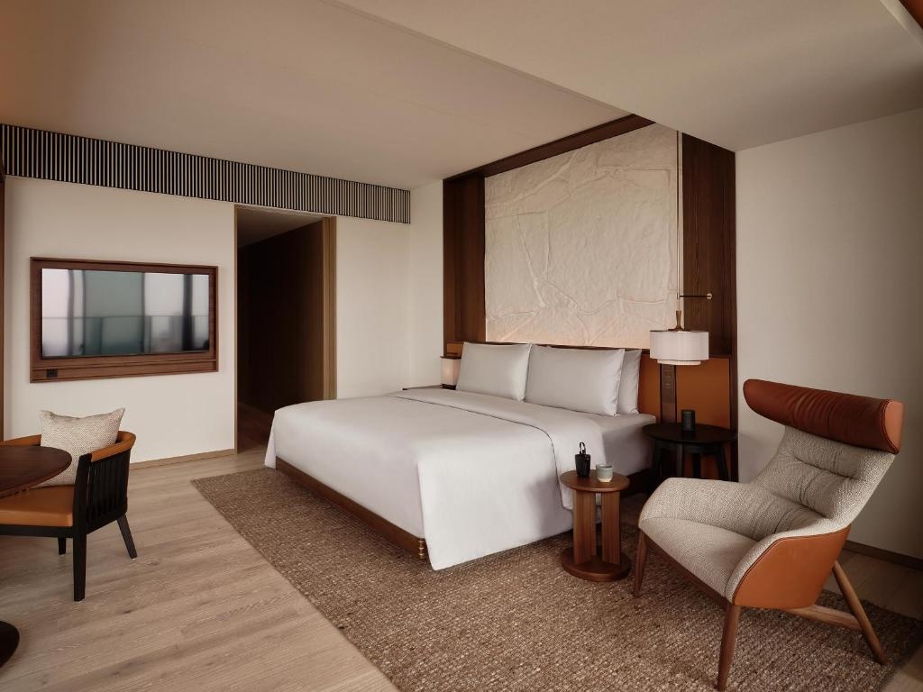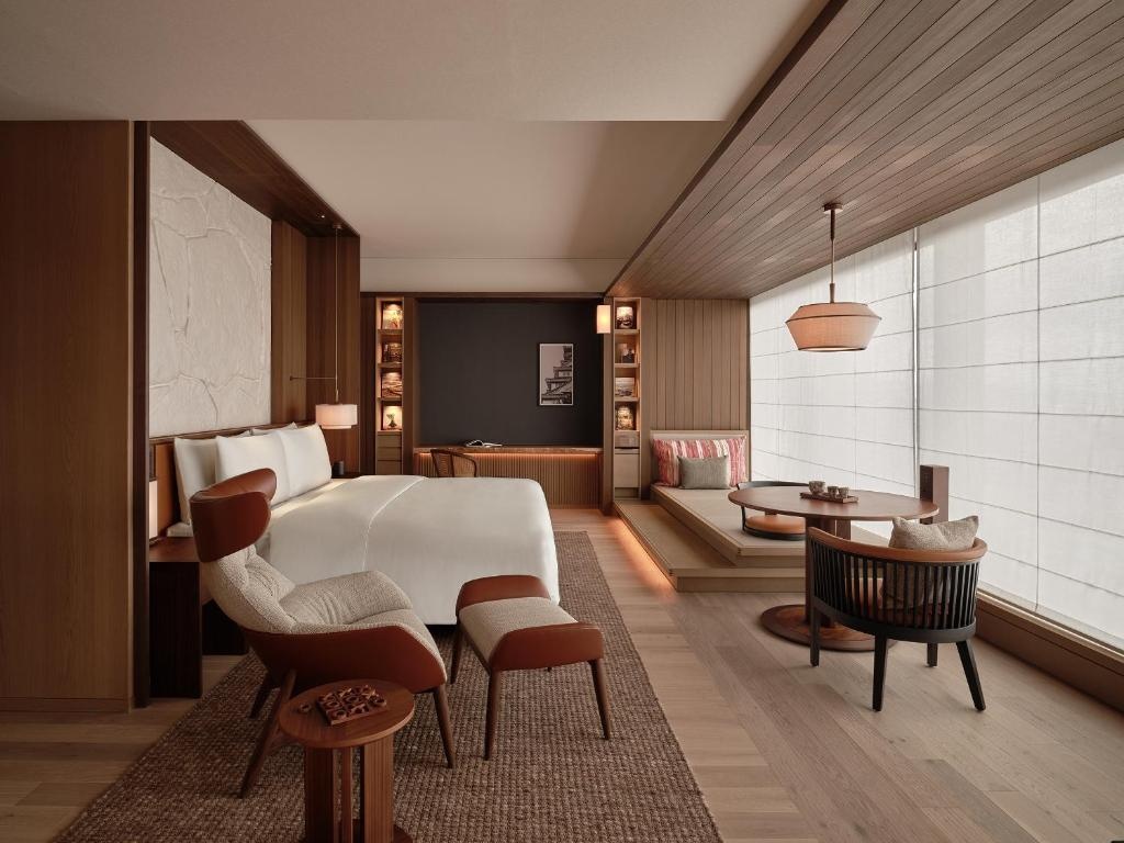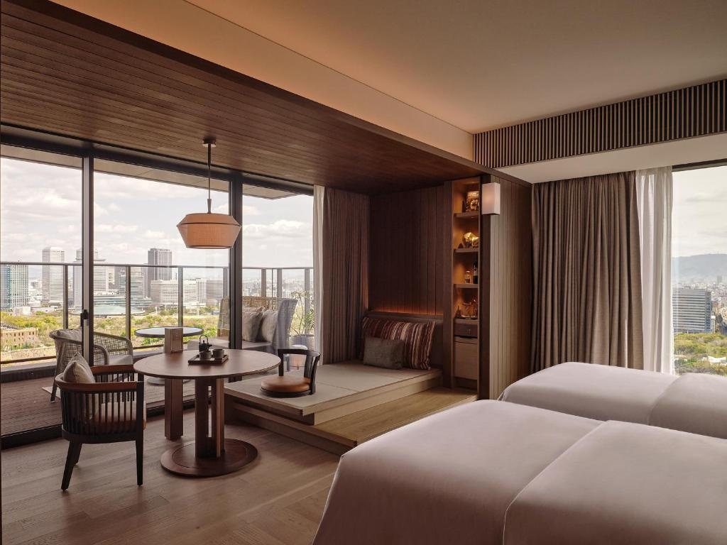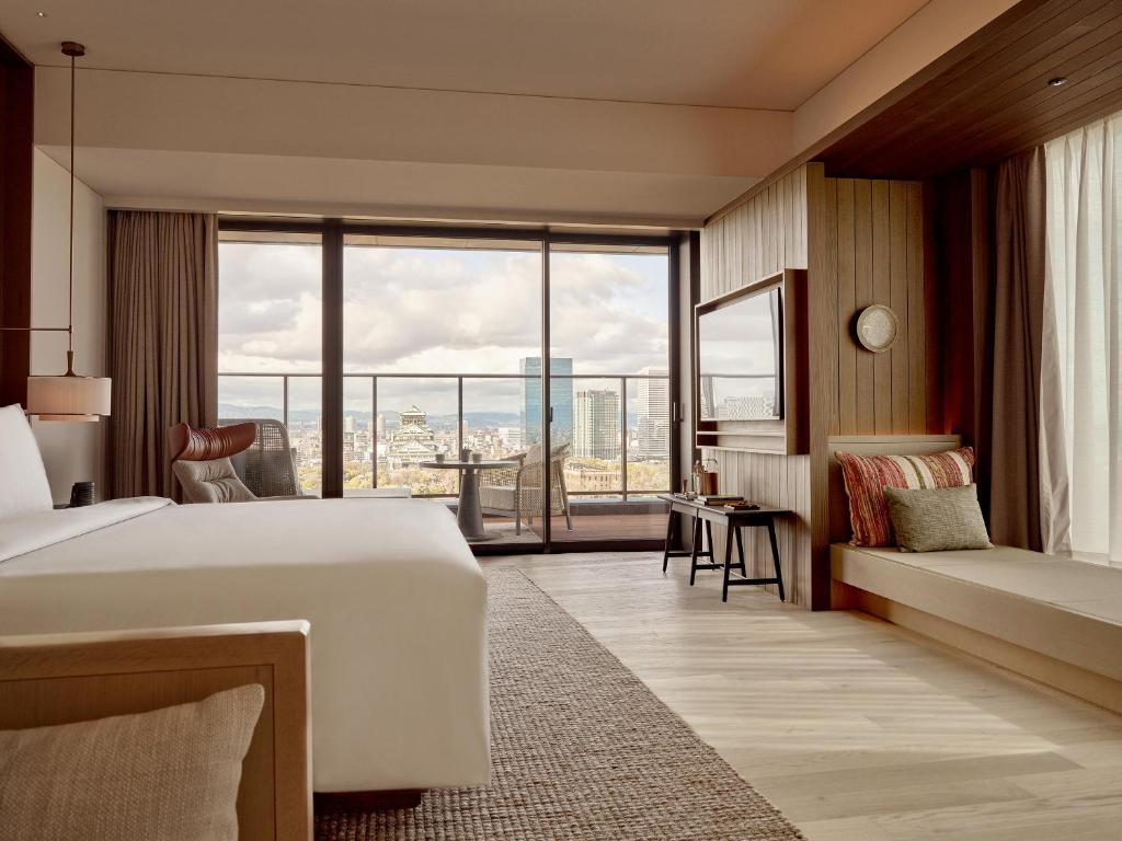 Patina Osaka es un hotel de lujo contemporáneo situado en el corazón de Osaka, a unos minutos caminando del Castillo de Osaka y parques emblemáticos. Este alojamiento 5 estrellas combina diseño japonés minimalista con confort moderno, ofreciendo a sus huéspedes un refugio urbano sofisticado con amplias habitaciones y suites decoradas con materiales naturales y grandes ventanales con vistas panorámicas. El hotel dispone de instalaciones de primer nivel como piscina cubierta, gimnasio, sauna, spa de bienestar y varios restaurantes y bares con cocina internacional y japonesa.